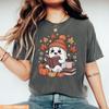 New Hot Cute Ghost Reading Enthusiast Halloween Ghost Coffee Women's T-shirt Kawayi Pattern T-shirt