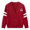 Pletený kardigan pro děti se střední a velkou velikostí s výšivkou s výstřihem do V, s dlouhým rukávem, jarní a podzimní bavlněný pletený kardigan pro chlapce a dívky
