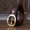 Retro Plisovaný Trendy Pásek s Měděnou Sponou pro Ženy Pravá Kůže První Vrstva Čistá Hovězí Kůže Všestranný Džínový Pás