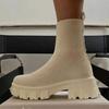 Dámské kozačky Podzimní Zimní kozačky Nazouvací Ponožkové boty Dámské Platformové kozačky na podpatku Pletené Kotníkové kozačky Dámské