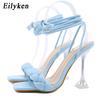 Nové letní módní designové pletené dámské sandály transparentní zvláštní vysoké podpatky dámské sandály boty s otevřenou špičkou