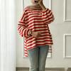ZANZEA Women Stripe Print Loose Casual Round Neck Long Sleeve T-Shirts