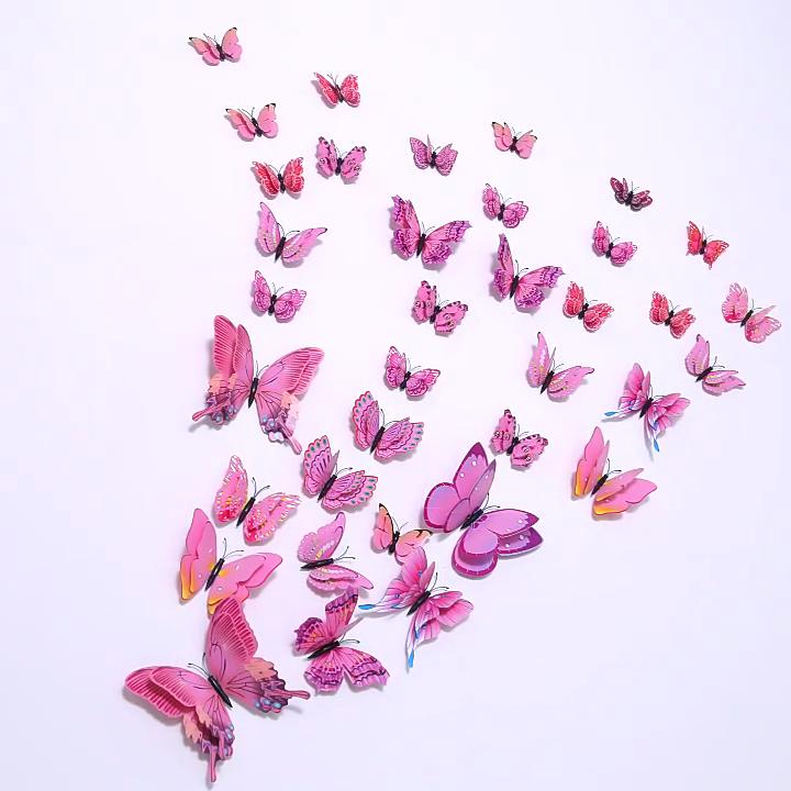 12pcs/set Wall Sticker Double Layer Butterfly Sticker 3D Butterflies Colorful For Home Fridage Decor KTY
