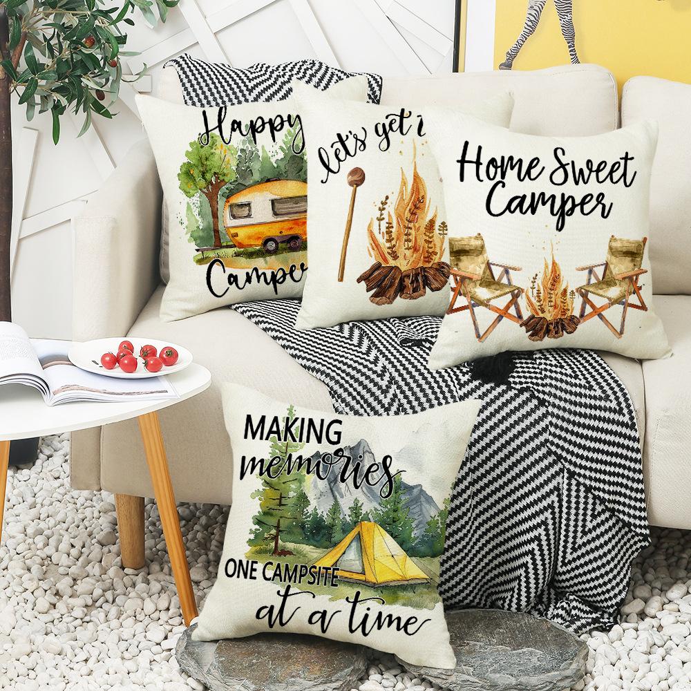 Plant Letter Print Pillow, Sofa Pillow Cover, Car Waist Protector, Bedside Cushion Cover, Cartoon Hand-painted Pillow