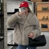 Dámská podzimní a zimní bunda z umělé kožešiny s volným klopovým límcem a dlouhým rukávem, dámský kabát