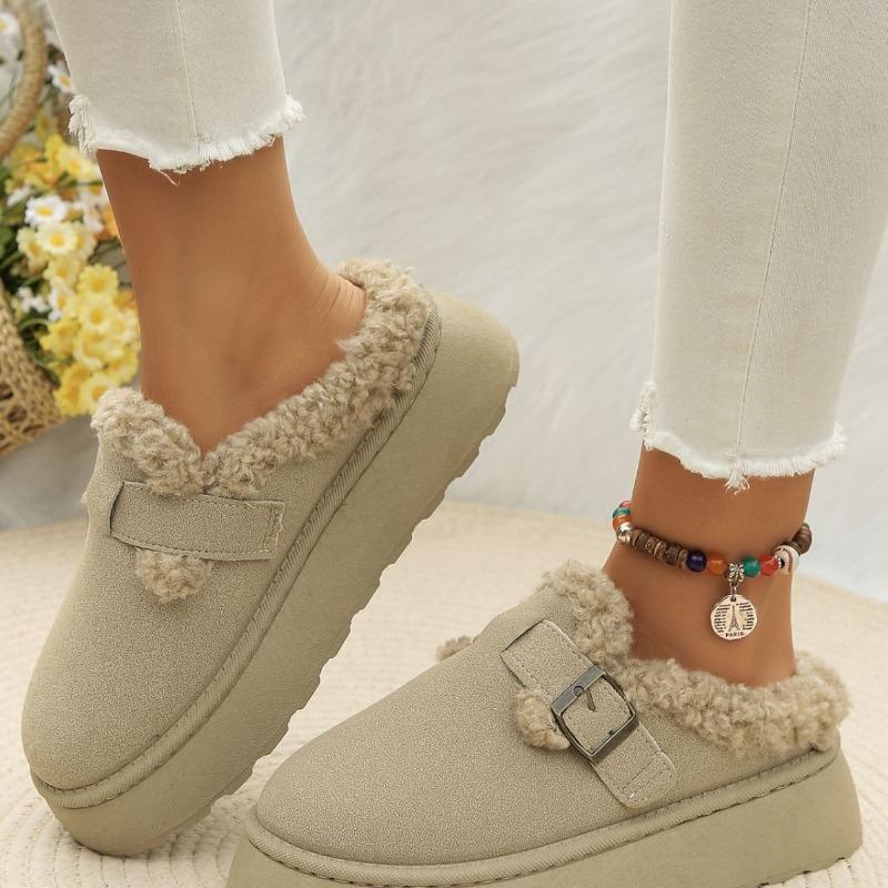 Autumn and winter new wool cotton shoes women's round head thick-soled plush lazy foot snow boots