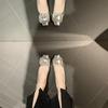 Cowhide version~ Grape mother has the same expensive square buckle rhinestone shallow mouth square head flat shoes for commuting and one-pedal single