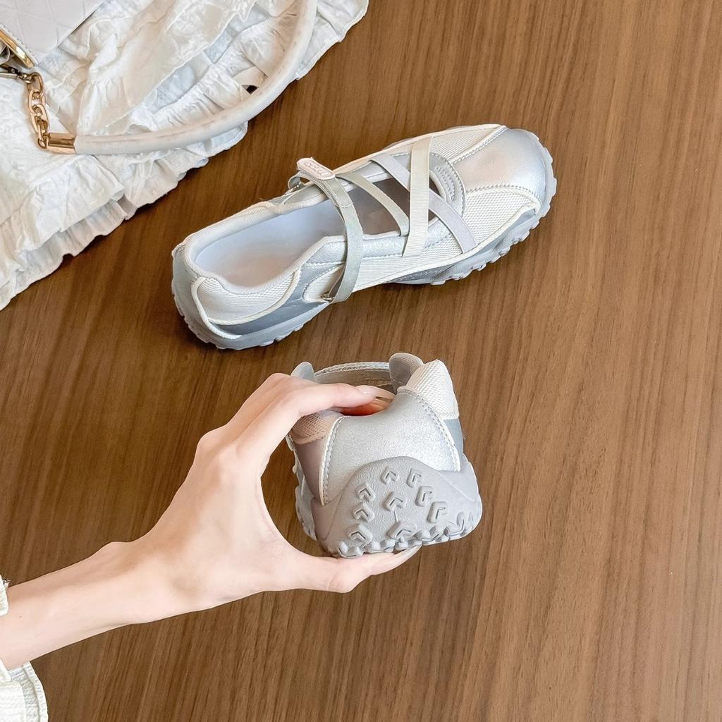 Cowhide version! 5cm inner height-increasing platform ballet training shoes women's summer breathable mesh Mary Jane sports and leisure shoes