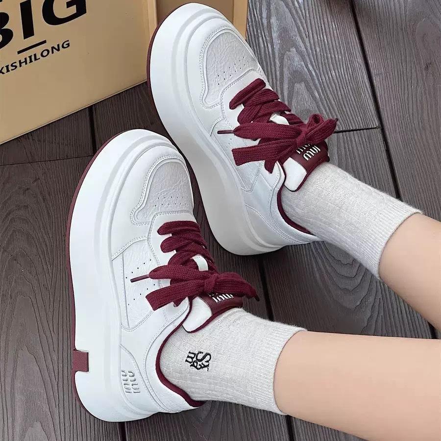 Platform white shoes women's shoes 2025 autumn new versatile sports and leisure shoes heightened lace-up lightweight soft baseplate shoes