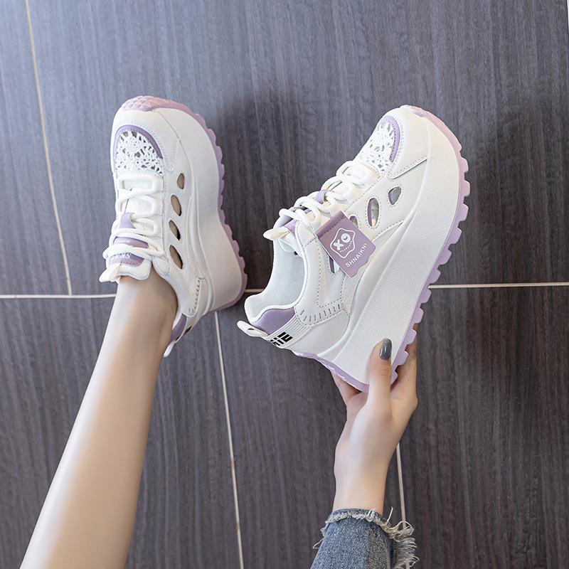 Spring and autumn new 8 cm muffin thick sole heightening women's shoes versatile ultra-thin sports and leisure shoes sports shoes women's shoes