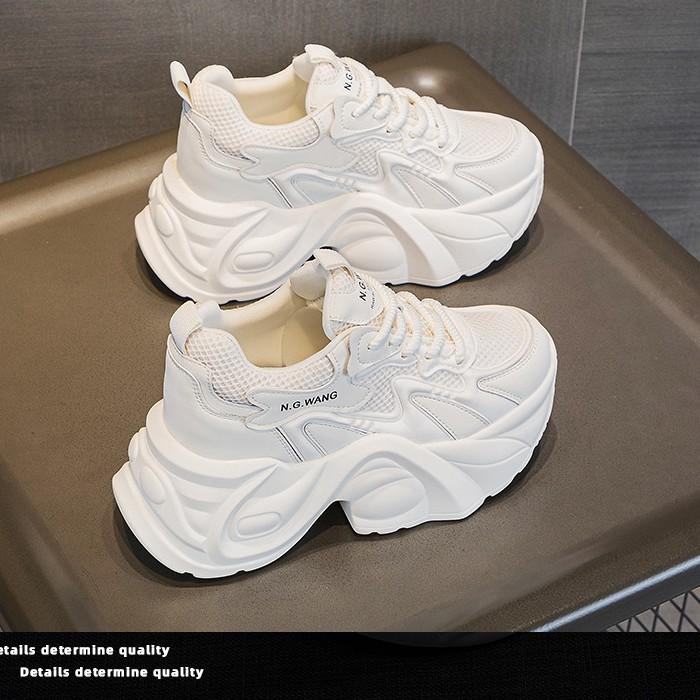 2025 autumn and winter new thick-soled high-top women's shoes 10cm wedge heel comfortable versatile waterproof table dad shoes women's black