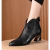 New autumn and winter leather to Martin boots women's pointed women's leather shoes medium heel Martin boots thick heel large size women's shoes