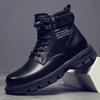 Pánské boty Podzim/zima 2024 Pánské boty Korejská verze Vysoké šněrovací s rovnou podrážkou Kulatá špička Pohodlné kožené boty