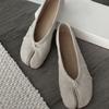 Cowhide version~ pleated linen leather soft-soled split-toed shoes women's canvas Mary Jane flats pig's trotters single shoes ladyshoes