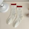 Color-blocking Socks, Women's Mid-calf Socks, Rolled-up Double Cuffs, Cartoon Embroidery, Boneless Pure Cotton Pile Socks