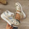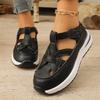 Letní nové sandály na klínku s taškou, duté prodyšné dámské boty pro zahraniční obchod, velká velikost, muffinová silná podrážka, na suchý zip
