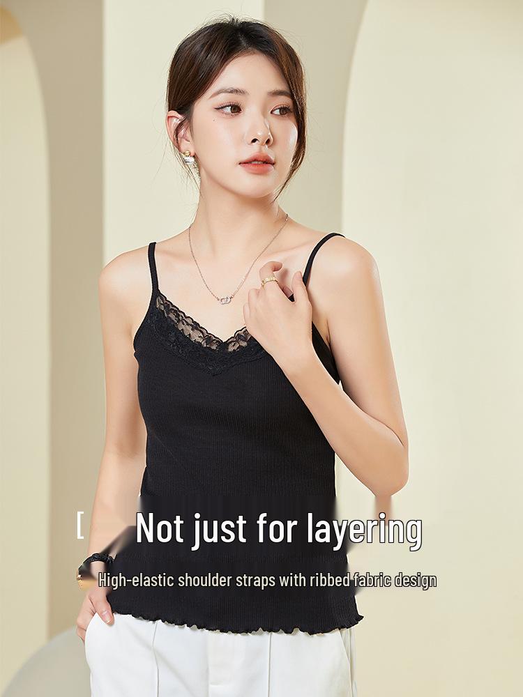 Tangge Silk Lace Camisole - Women's Sexy Knitted Mulberry Silk Top for Spring & Summer