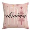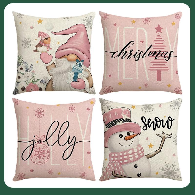 Pink Warm Snowflake Snowman Santa Claus Element Digital Printing Linen Material Home Sofa Pillow Cover