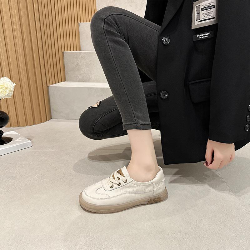 First layer cowhide leather little white shoes women's 2025 new soft-soled casual single shoes large size beef tendon lace-up lazy shoes women