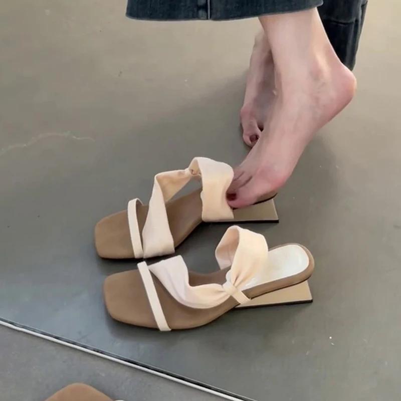 Gladiator Summer Square Toe Women Sandals Fashion Thick Heel Slide Ladies Outdoor Casual Dress Street Style Shoes