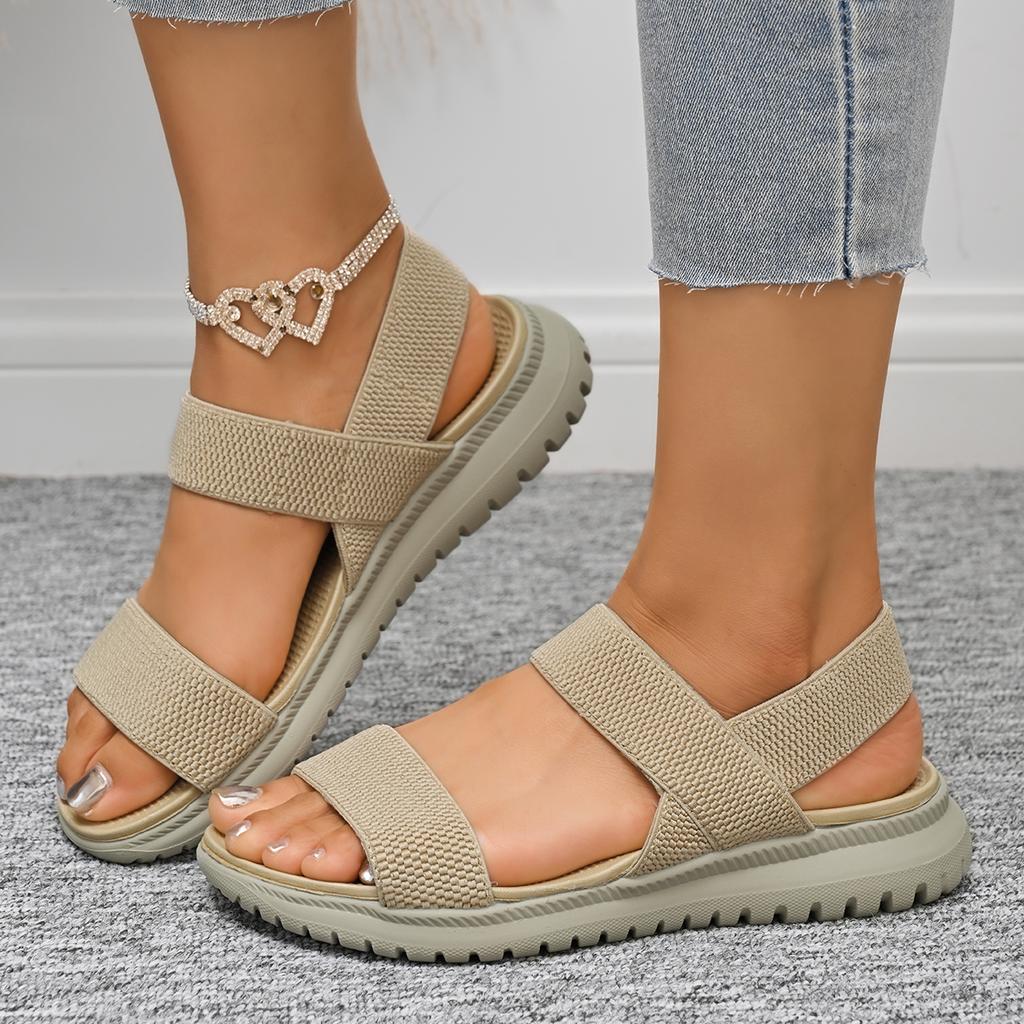 Casual Khaki Canvas Strap Wedge Heel Sandals Women 2025 Summer Round Toe Medium Heel Sandals Comfortable Soft Sole Shoes Women