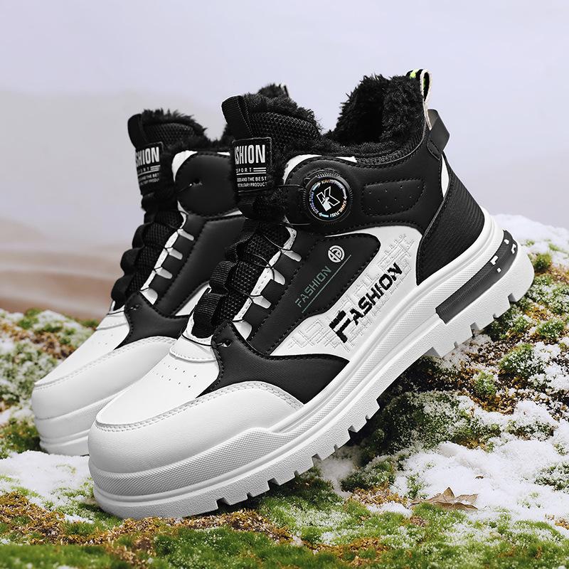 Winter new men's shoes velvet Martin shoes men's shoes men's casual sports cotton shoes rotating buttons