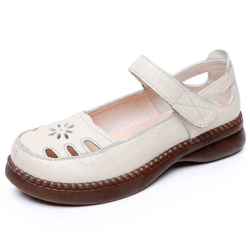GKTINOO 2025 Summer Genuine Leather Hollow Shoes Woman Sandals Casual Mom Flat Soft Sole Comfortable Sneakers Non-slip