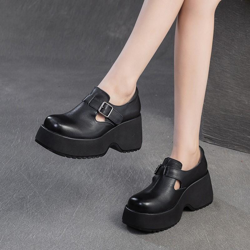 GKTINOO Genuine Leather Square Toe Women's Shoes 2025 Spring New Pumps Simple Thick Sole Casual Comfortable Platform Shoes