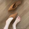 Nové dámské pantofle na vysokém podpatku se špičatou špičkou 2025 jaro s uzavřenou špičkou sexy jehlový podpatek semišové jednoduché pantofle