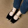 2024 Elegantní jarní žena se čtvercovou špičkou Lolita Kawaii Lady Barefoot Boat Gold Flats Elegantní měkké Balerína Párty Boty Mary Jane