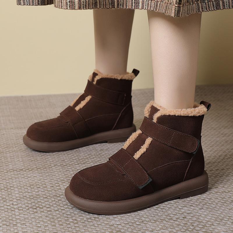 GKTINOO Snow Boots Women Cow Suede Furry Solid Color Round Toe Hook & Loop Flat With 2025 Winter Lasies Shoes Handmade