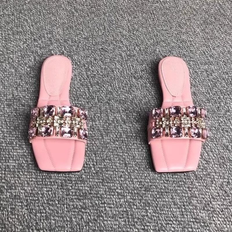 Kamínkové pantofle Léto Nové Čtvercová špička Otevřená špička Kamínková přezka Měkká podrážka Protiskluzové Odolné proti opotřebení Baleríny