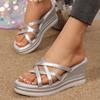 Fashion Cross Strap Wedge Heel Sandals for Women Summer 2025 Silver Chunky Platform Slippers Woman Anti Slip Thick Sole Slides Plus Size