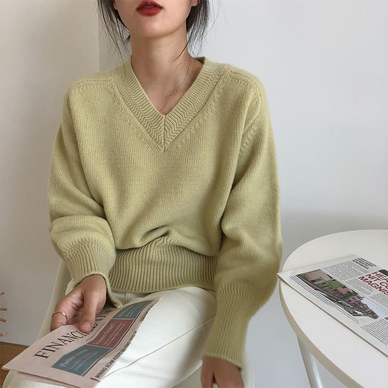 Svetr pro ženy Podzim Zima Zesílený Hřejivý Pletený Pružný Dlouhý rukáv Výstřih do V Topy