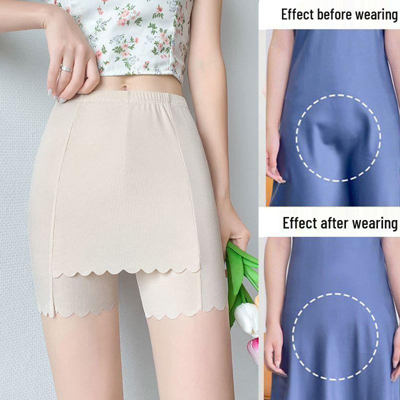 Dámské letní bezpečnostní kalhotky z ledového hedvábí: Ochrana proti odhalení, Dvojvrstvá, Krytí klínku, Tenký styl, Bez rolovacích okrajů.