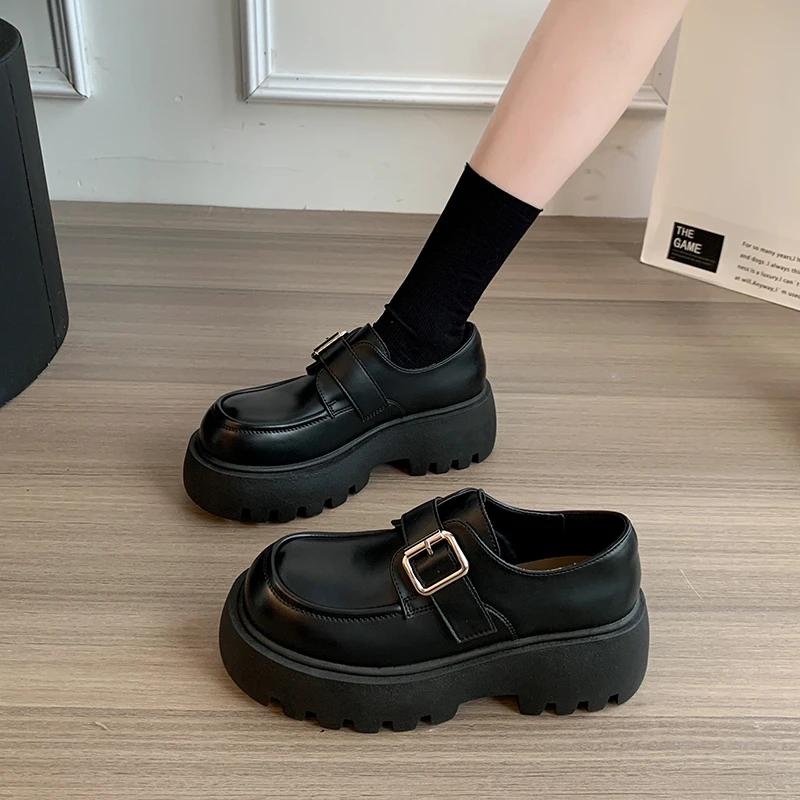 Fashion Autumn New Coarse Heel Shoes for Women Round Head Deep Mouth Metal Buckle Soft Sole Anti-slip Wear-resistant Low-top Shoes
