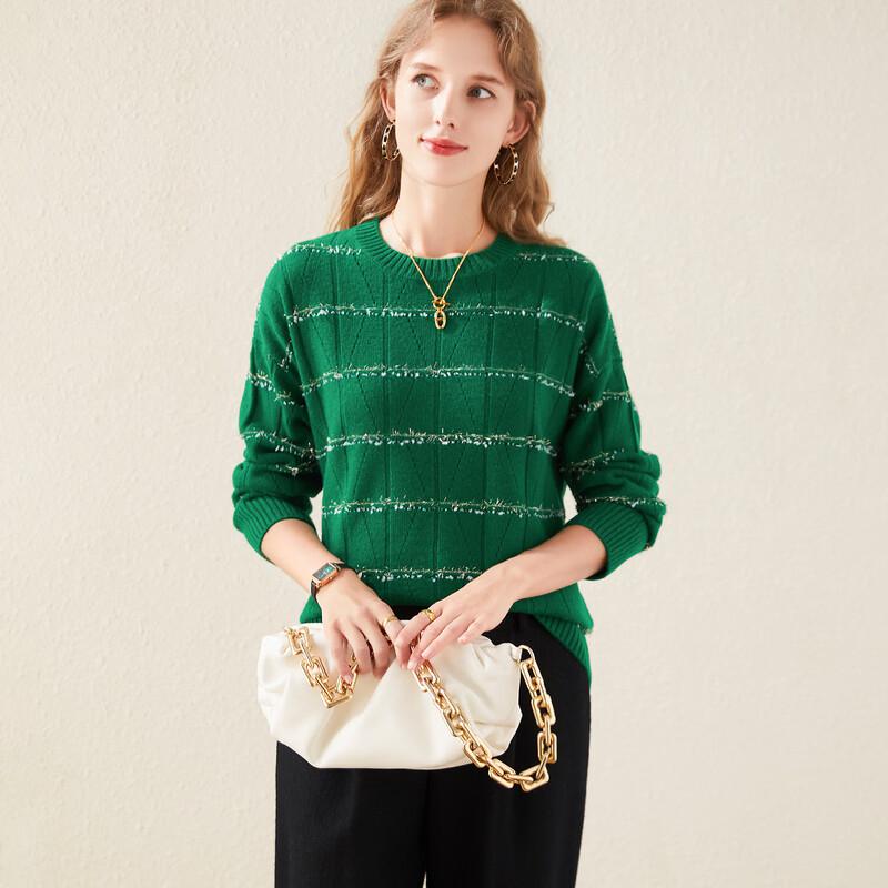 TUHUANG Women's Thick Pure Wool Crew Neck Pullover Sweater (TW34Y4893)