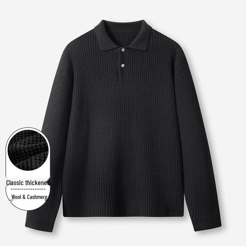 LUOSI Men's Thickened Old Money Style Lapel Wool Sweater