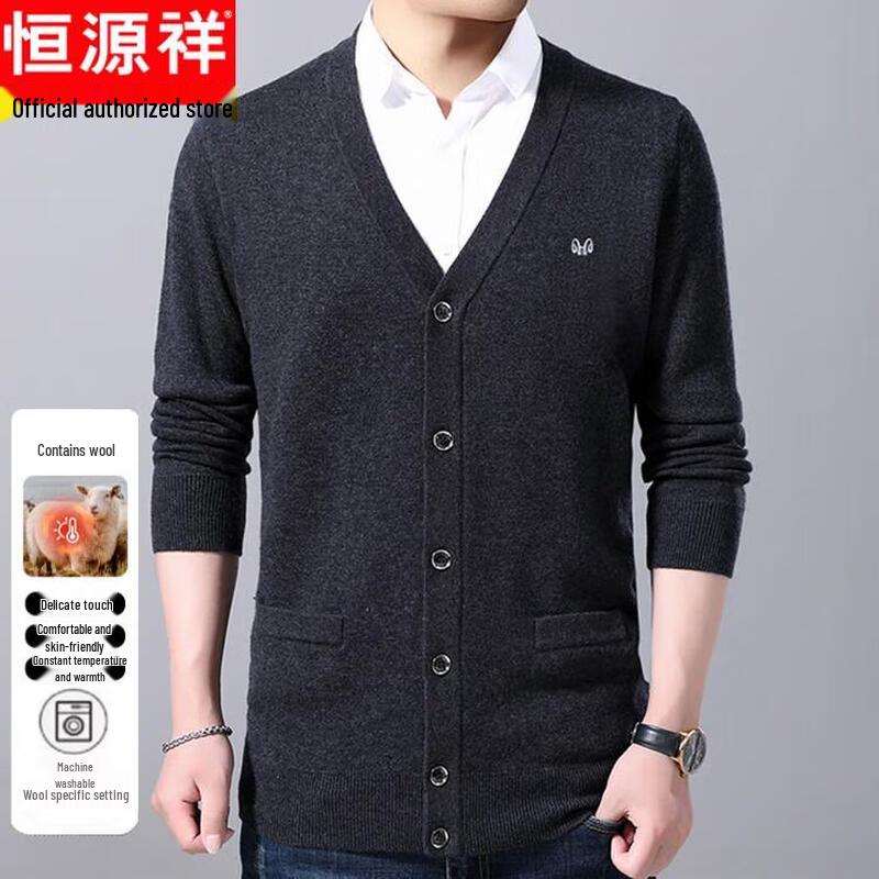 Hengyuanxiang Men's V-Neck Wool Blend Knit Cardigan