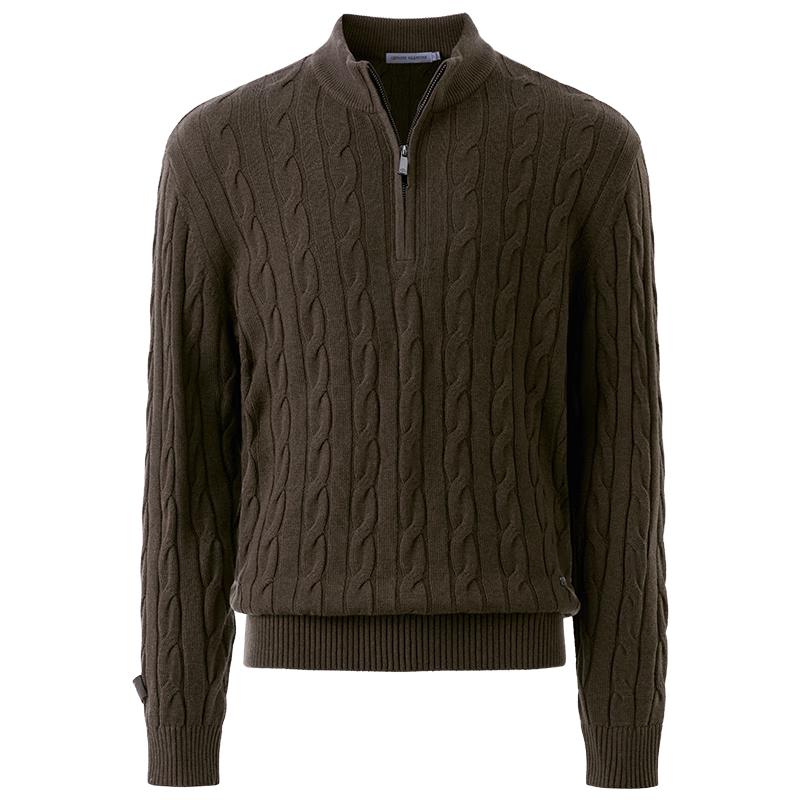 GIOVANNI VALENTINO Men's 100% Wool Cable Knit Mock Neck Zip Sweater
