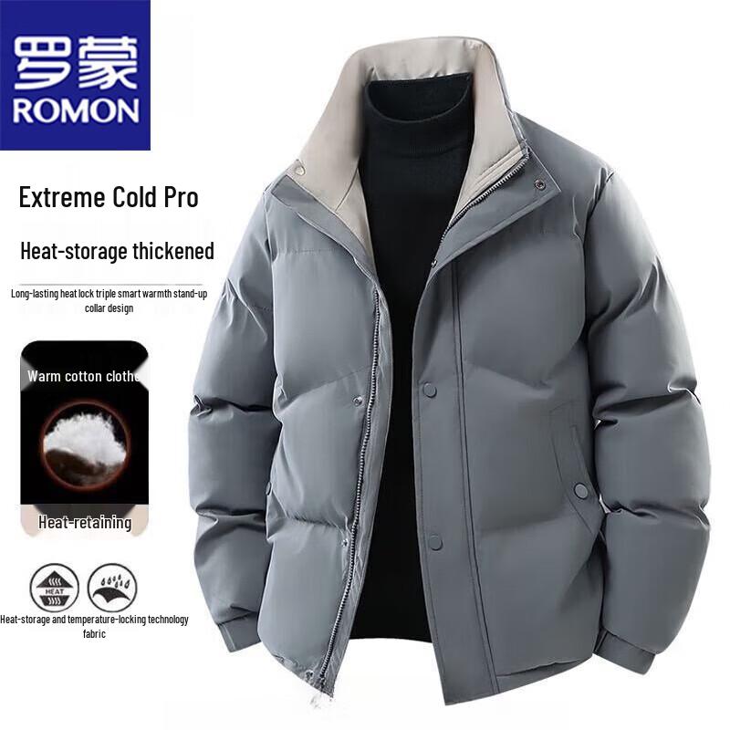 ROMON Men's Solid Color Stand Collar Padded Jacket