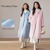 VICTORIA&VERA Women's Double-Breasted Long Woolen Coat
