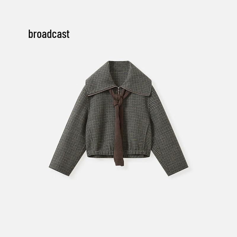 Broadcast Women's Retro Plaid Wool Blend Short Coat