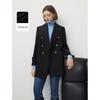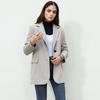 Women's Padded Shoulder Lapel Long Wool Blazer Coat