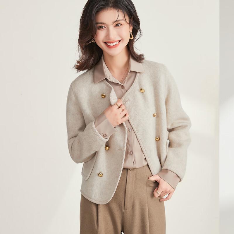 JINJU Women's Small Fragrance Style Wool Blend Short Coat