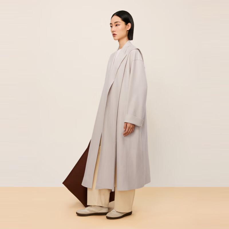 LESS Women's Long Lapel Collar 100% Wool Coat