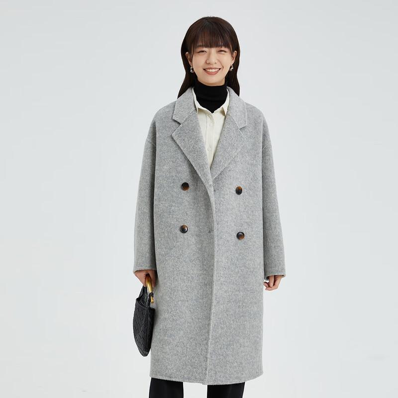 TATU Women's Korean Style Mid-length Double-faced Wool Coat