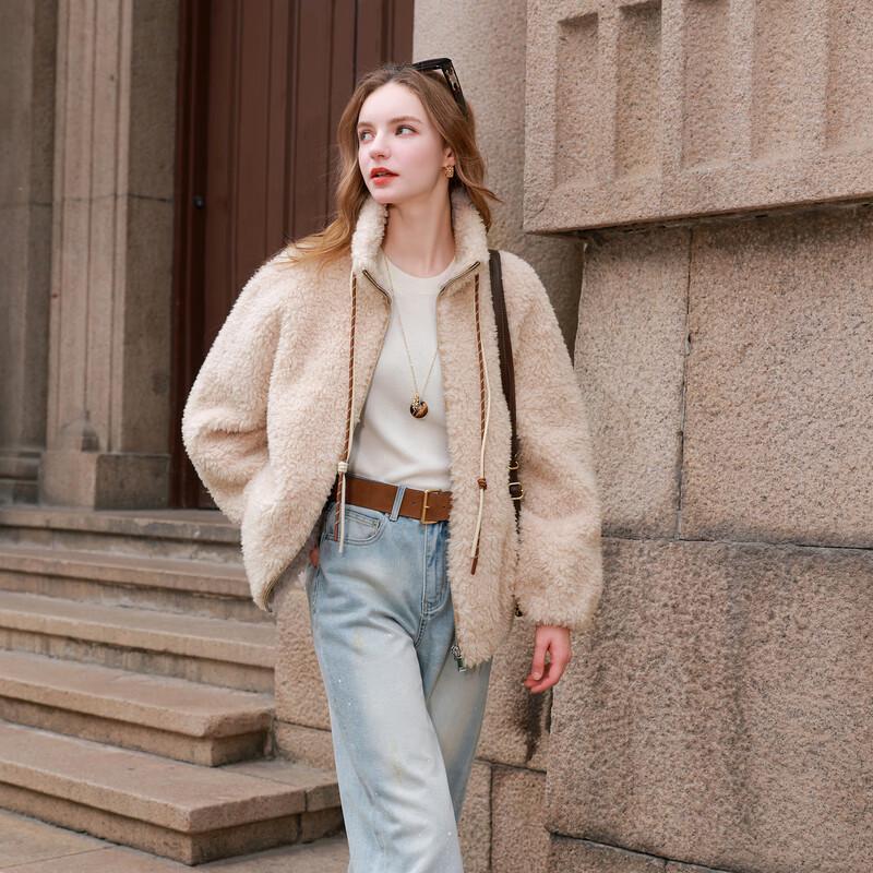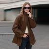 Sancai Women's 2025 Winter Faux Fur Stand Collar Jacket