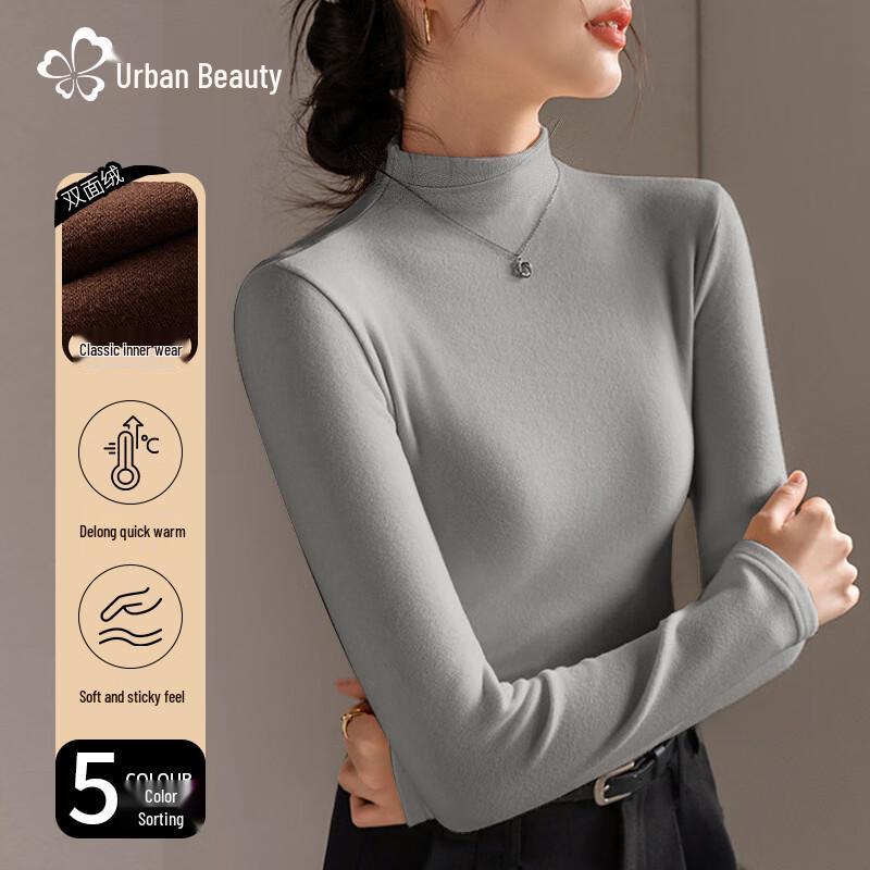 Urban Beauty Women's Semi-High Collar Slim-Fit Brushed Long Sleeve Top