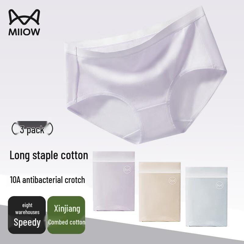 MiiOW Women's Class A Baby Cotton Antibacterial Mid-Waist Briefs (3-Pack)